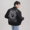 The model (height 6′) is wearing a size M